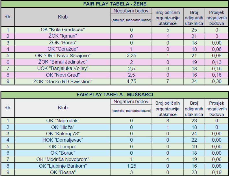 Titulu “Lider sporstkog ponašanja” ove godine odnose OK “Kula Gradačac” u ženskoj, te OK “Napredak” u muškoj konkurenciji.